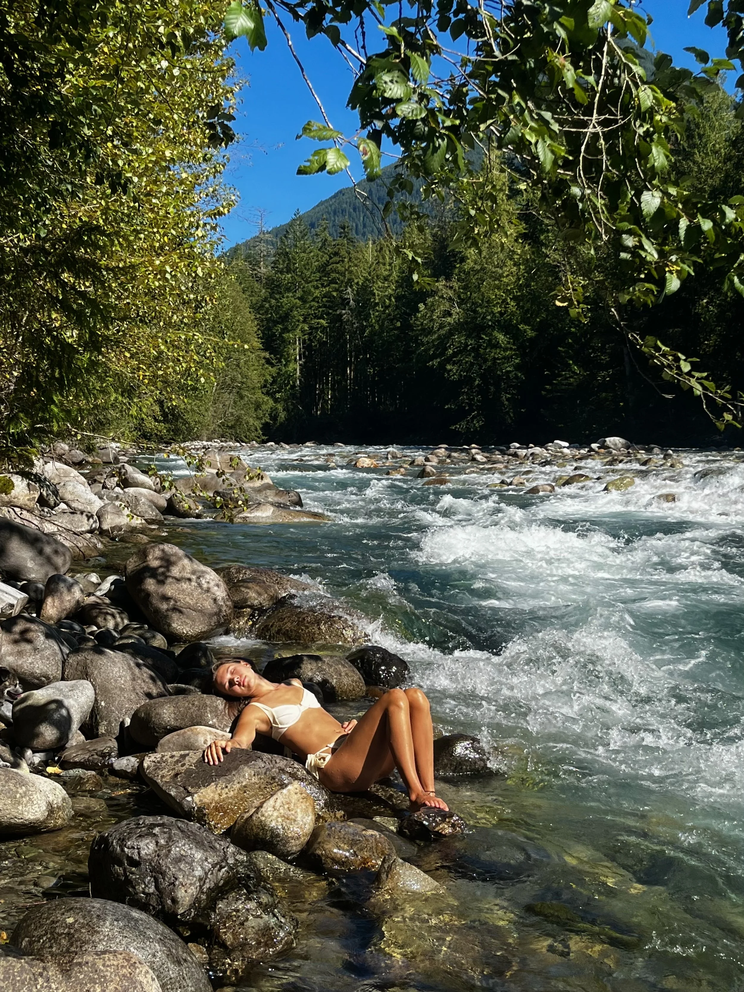 I went camping every summer as a kid. It was the only time I felt like I could truly be present with myself, without the pressure of productivity or the overwhelm of self analyzation. The chatter in my mind transformed into nourishing passages that held me, worries of what value I had in the world shifted into the undeniable feeling of purpose holding my whole body with its gentle hum. To this day it’s an essential piece of my life, camping never fails to holds me tenderly, acting as the portal that brings my prayers onto the earth I walk on. It’s an invitation to integrate the woman I know I am, that’s lingering beneath the noise of daily pressure. When I fully immerse in nature it creates the space for her to come through. My fullness is no longer an idea, it’s an experience. Feeling my presence, wildness, and vulnerability so wholly… in the reflection of women and nature, is a full body remembrance of what it means to be alive in a love filled world.